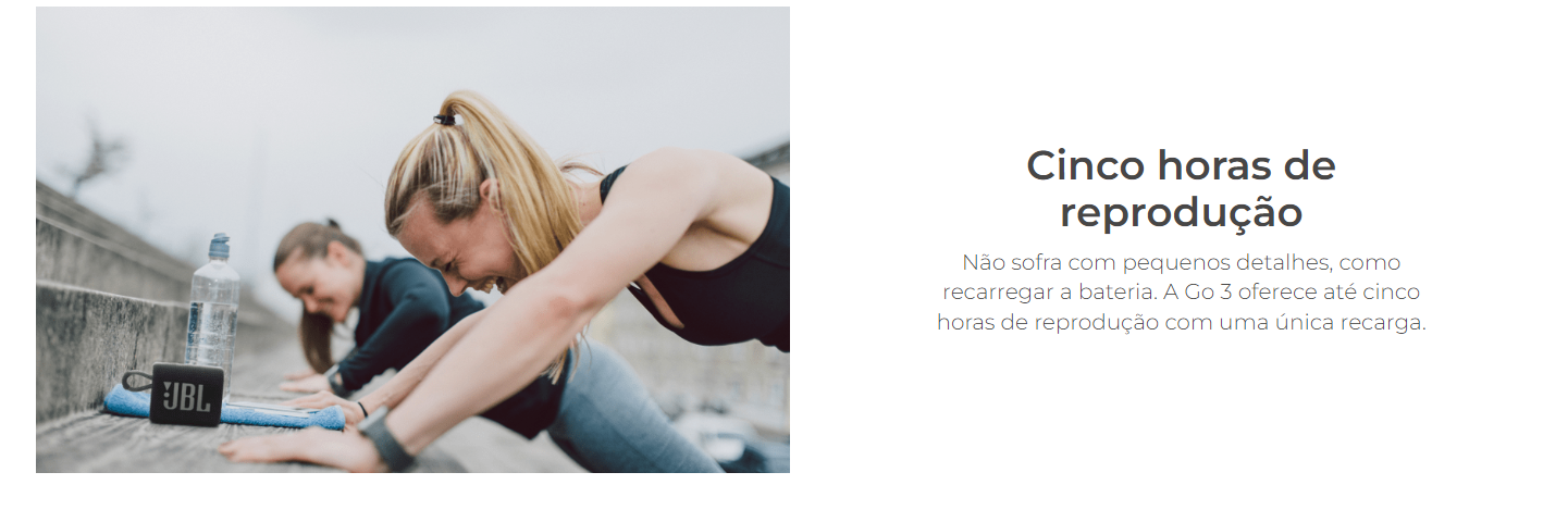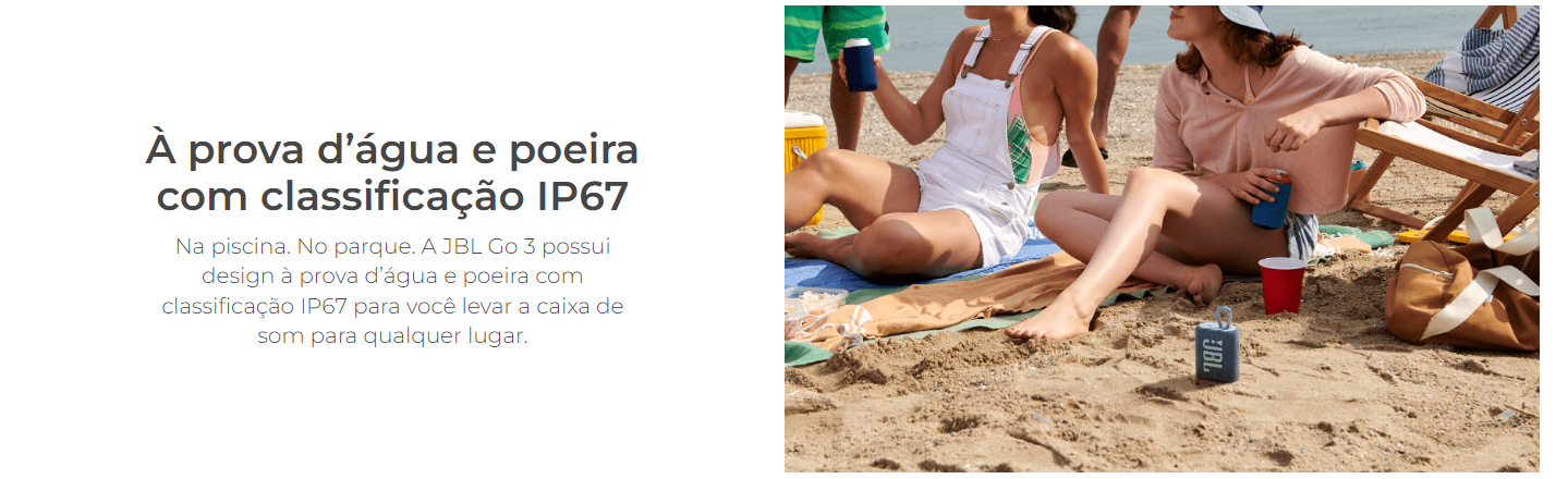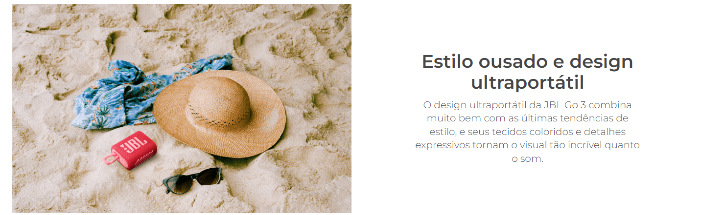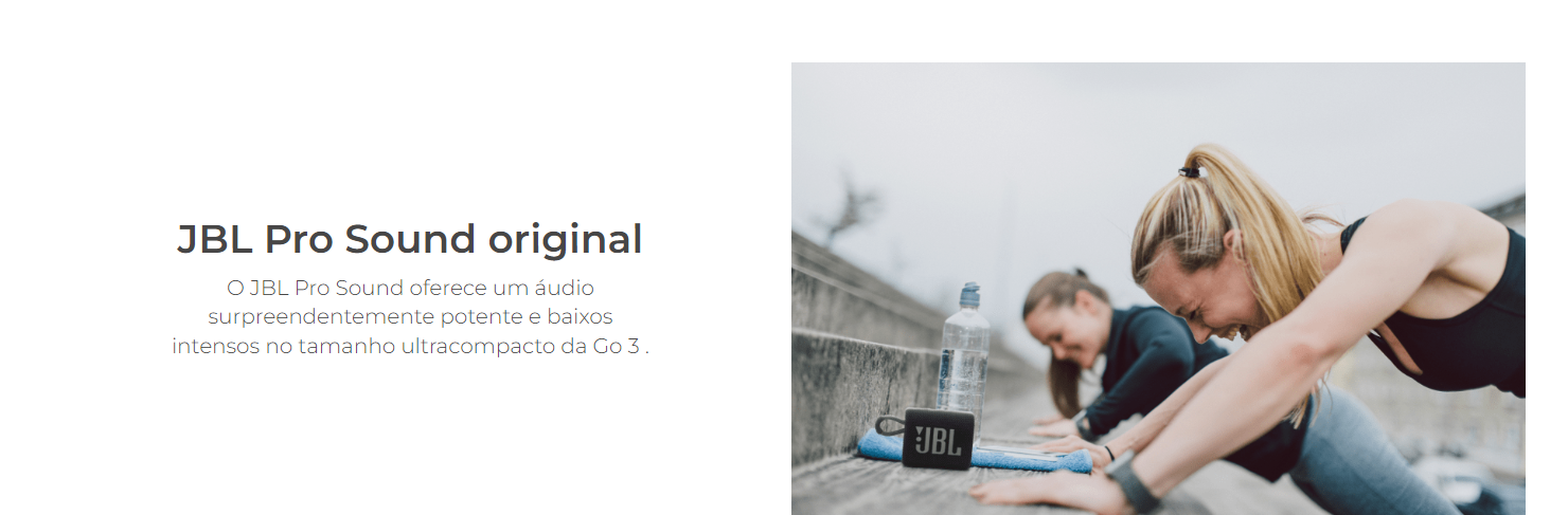 O JBL Pro Sound oferece um áudio surpreendentemente potente e baixos intensos no tamanho ultracompacto da Go 3 .